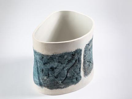 Für eine Gruppenausstellung zum Thema „hart & weich“ der GEDOK Heidelberg habe ich keramische Gefäße gewählt. Dabei habe ich zur Gestaltung der Oberfläche den noch weichen Ton mittels feiner Strukturen geprägt und später eingefärbt.